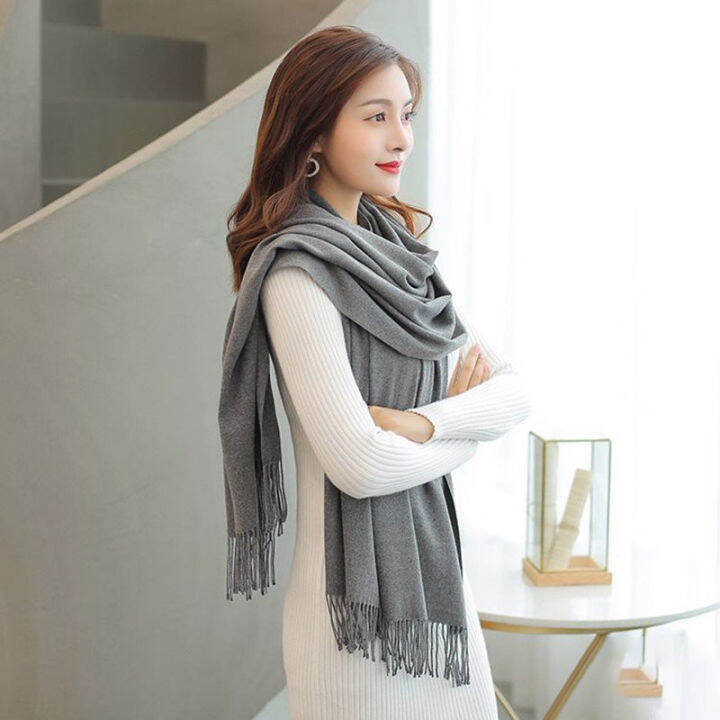 Một chiếc khăn len hay cashmere mềm mại không chỉ giúp giữ ấm vùng cổ mà còn là điểm nhấn thời trang cho bộ trang phục mùa đông. Khăn có thể có màu sắc tương phản với áo khoác để tạo sự nổi bật, hoặc cùng tông để giữ sự nhã nhặn.