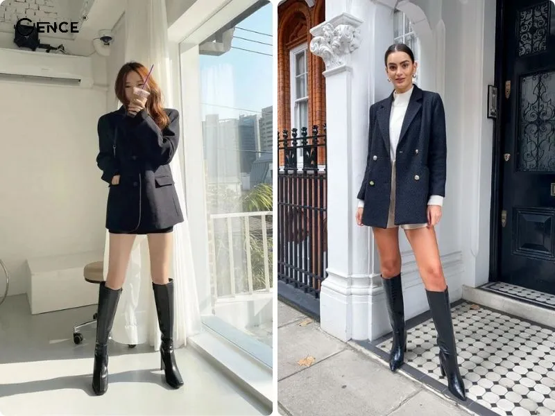 Boots cổ cao là lựa chọn lý tưởng để phối đồ công sở mùa đông khi nhiệt độ giảm sâu. Giày boots giúp giữ ấm đôi chân và rất dễ phối cùng các loại váy len hoặc quần jeans. Một đôi boots đen cổ điển sẽ là lựa chọn phù hợp với nhiều bộ trang phục, giúp bạn luôn tỏa sáng.