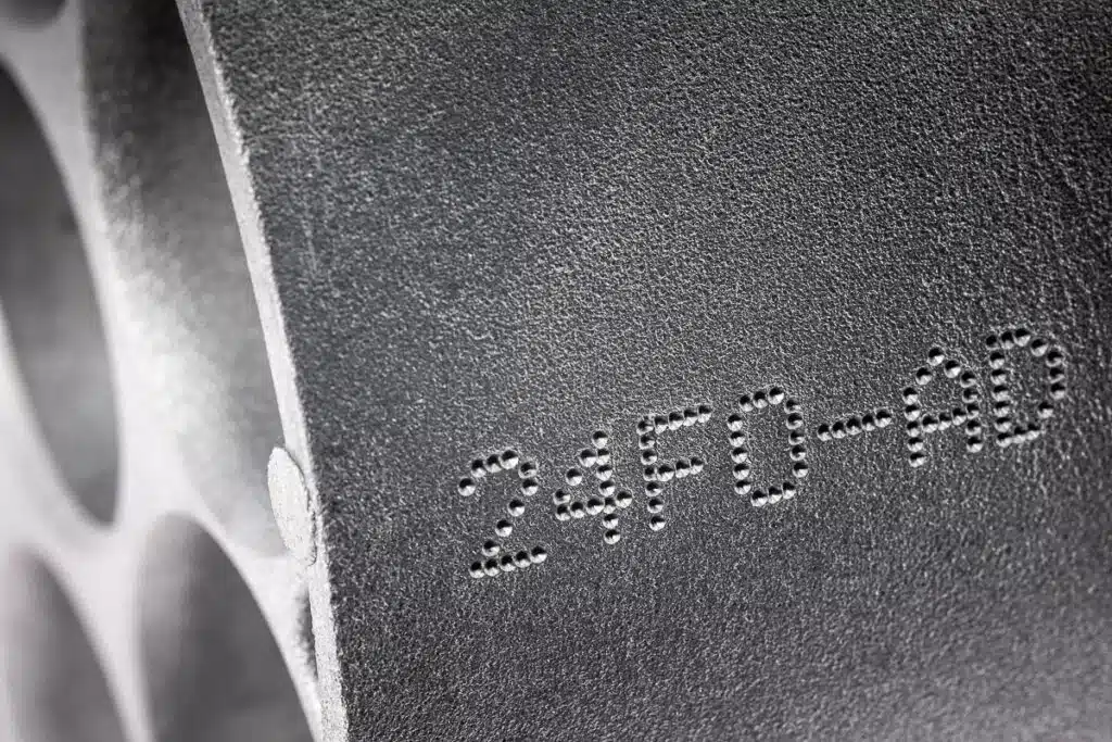 Máy khắc dấu dạng chấm có thể đánh dấu trên mọi loại vật liệu kim loại, từ nhựa đến thép đã qua xử lý với độ cứng lên đến 62 HRC, phù hợp cho việc tạo mã ma trận dữ liệu 2D và các ký tự lớn, dễ đọc.