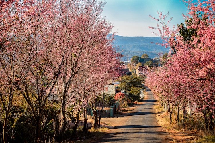 Đi Đà Lạt mùa nào đẹp để cảm nhận trọn vẹn sự tinh khôi của mùa xuân? Tháng 1 đến tháng 4 chính là câu trả lời. Đà Lạt bước vào mùa xuân với bầu không khí trong lành, mát mẻ. Ban ngày nhiệt độ trung bình khoảng 18 – 20 độ C, ban đêm se lạnh dễ chịu. Vào đầu năm, bạn có thể chiêm ngưỡng hoa mai anh đào phớt hồng rực rỡ, hoa ban trắng muốt cùng muôn vàn loài hoa xuân đua nở khắp các vườn hoa và con đường nhỏ. Khung cảnh như một bức tranh thủy mặc với sắc hoa nhẹ nhàng hòa quyện cùng những đồi thông xanh rì.